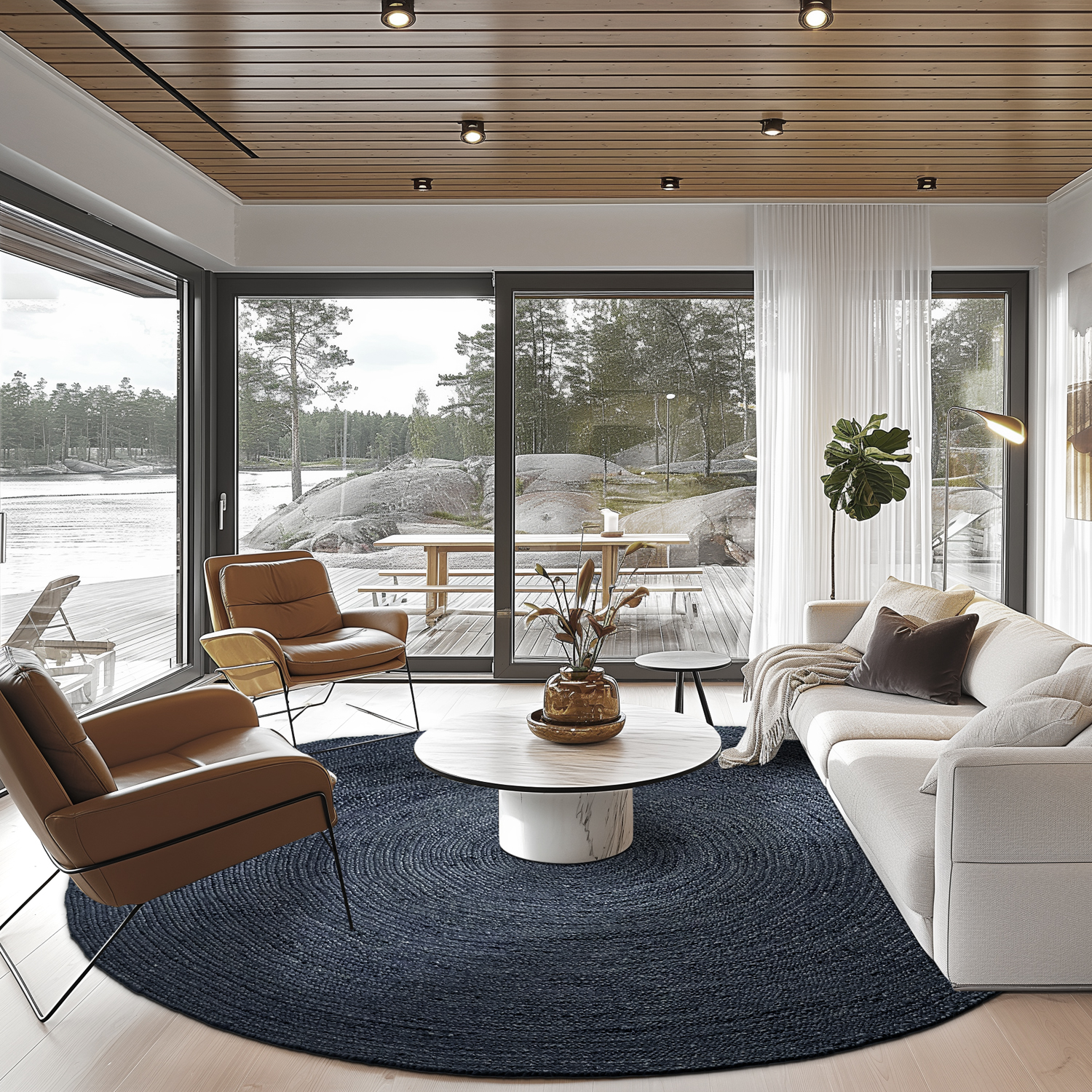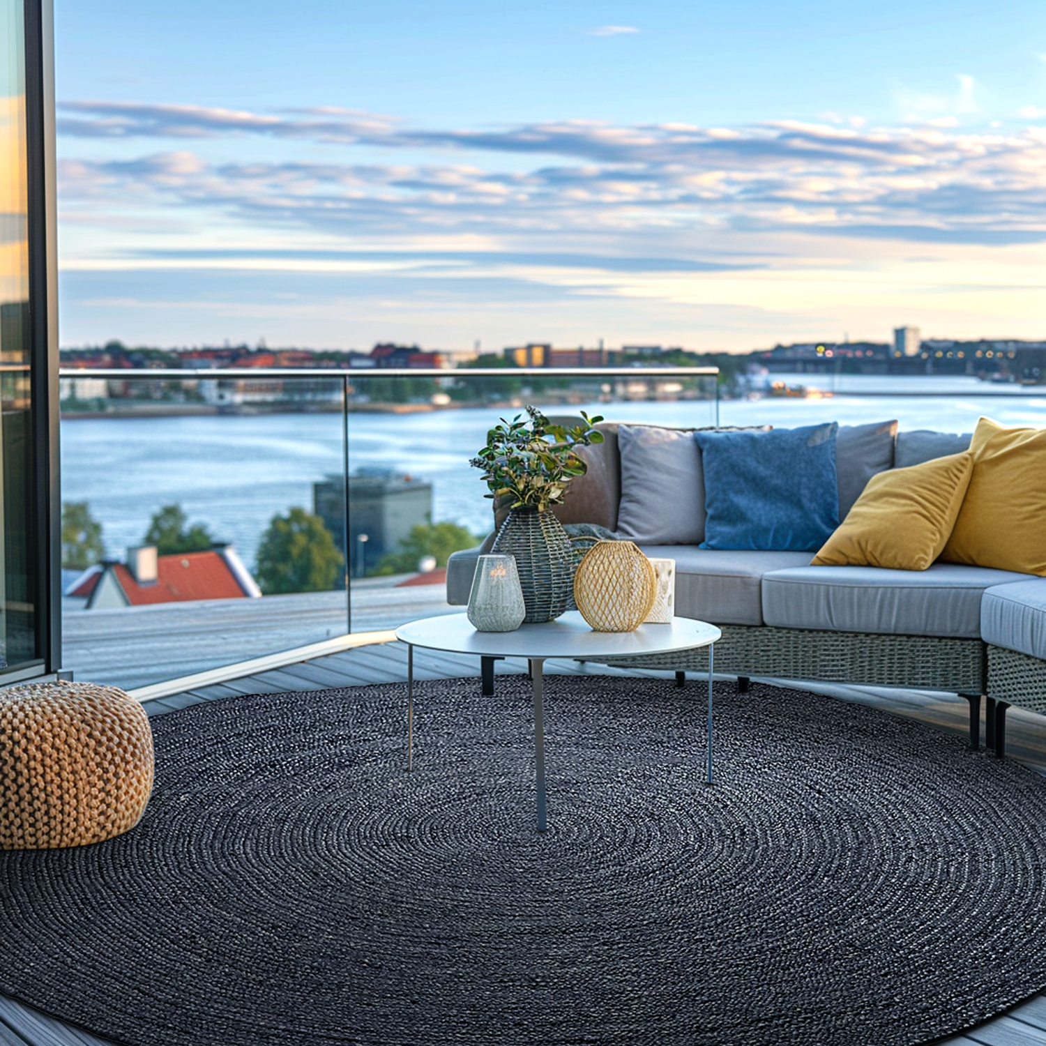 Kulatý jutový koberec - Amasia (tmavě modrá)