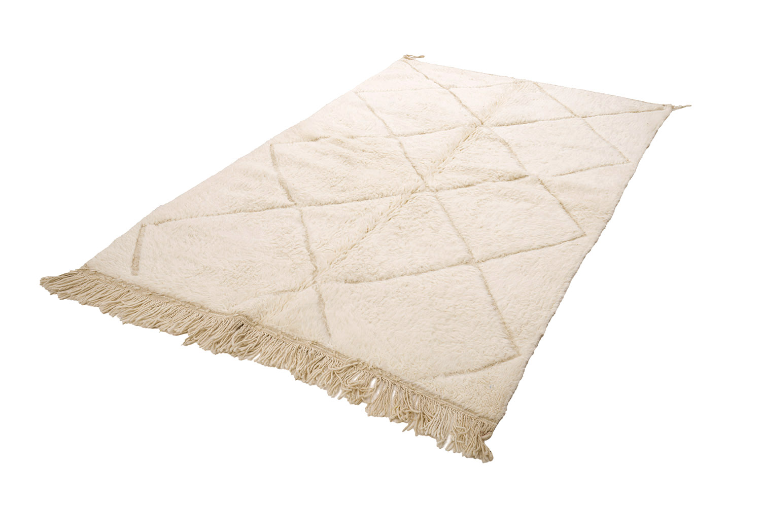 Charakteristické jednoduché, ale elegantní geometrické vzory dodávají každému prostoru sofistikovaný a časově neomezený vzhled. Vyrobeno s neuvěřitelnou péčí a precizností, Beni Ourain koberce jsou synonymem pro luxus a autentický berberský styl, což je ideální volba pro ty, kteří chtějí do svého interiéru vnést prvek tradiční marocké kultury.