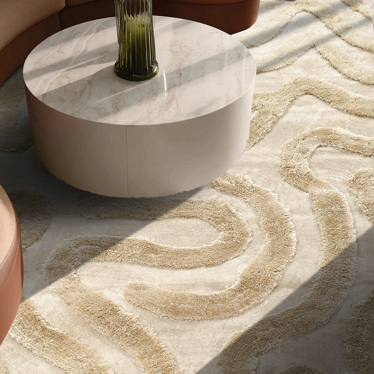 Elegantní koberec s vysokým a nízkým vlasem, který vytváří moderní a živý dojem v místnosti. Koberec má různě vysoký vlas, což mu dodává hmatovou strukturu a krásnou hloubku ve světle. Hustý vlas dělá koberec měkkým a pohodlným na chůzi, zatímco nižší části zvýrazňují vzor a dodávají mu exkluzivní charakter.
